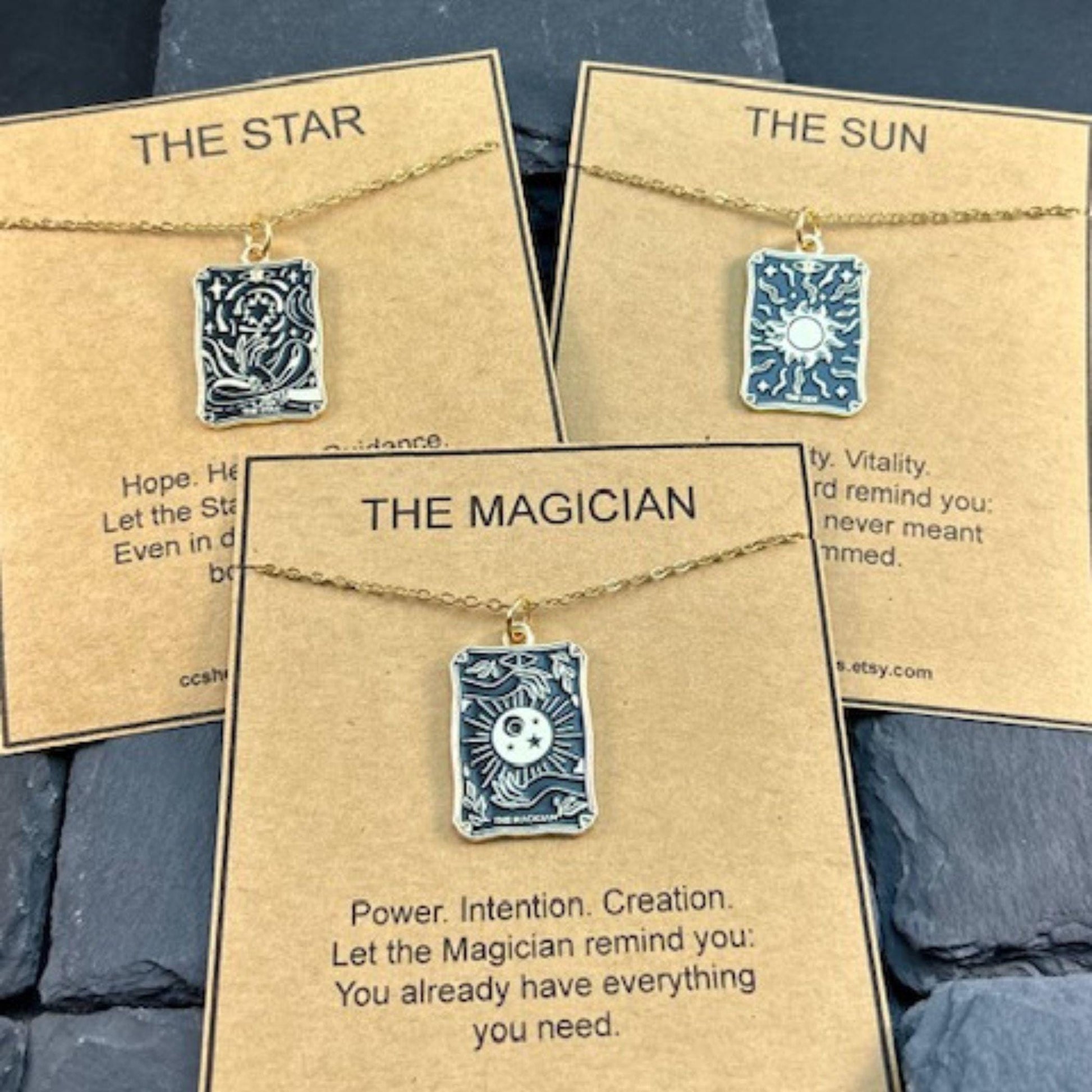 Tarot Card Necklace for Women Men, Tarot Card Gift ,The Magician ,The Lovers The Sun, The Star,Justice Card ,Witchy Gift ,Tarot Card Lovers